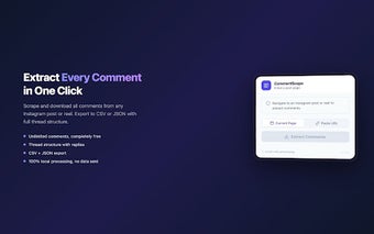 CommentScope ist eine Chrome-Erweiterung, die es Nutzern ermöglicht, Kommentare von Instagram-Posts und Reels einfach und effizient zu extrahieren. Die Anwendung bietet zwei Hauptmethoden zur Extraktion: direkt von der aktuellen Seite oder durch Eingabe einer URL. Die gesammelten Daten können in den Formaten CSV oder JSON exportiert werden, was eine einfache Analyse und Weiterverarbeitung ermöglicht. Die Benutzeroberfläche ist intuitiv, und der Fortschritt der Datenextraktion wird in Echtzeit angezeigt.